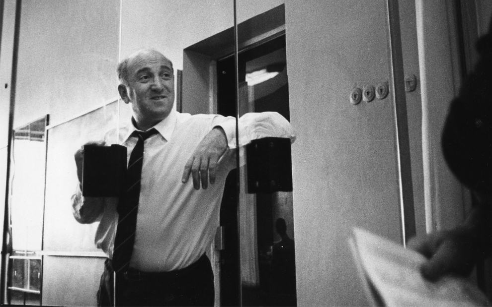 | 11 | Будкер рисовал на листочке и объяснял: «Если административный аппарат повернут лицом к директору, то сами понимаете, каким местом он оказывается повернутым к ученому — главному действующему лицу науки. А у нас весь административный аппарат, в том числе и директор, повернут лицом к научному сотруднику…» |